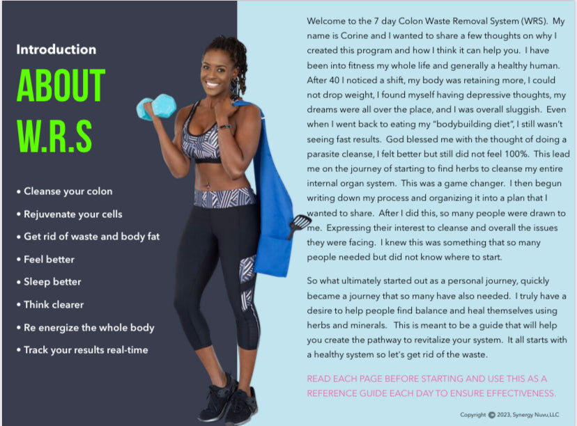 This is the 3rd week of the full 30 day Waste Removal System (WRS). Although we recommend doing the entire plan in order, we understand people may have direct needs they wish to target. Therefore, we have added a way to complete just 1 week. If you want a full body cleanse please search for the 30 Day Waste Removal System.