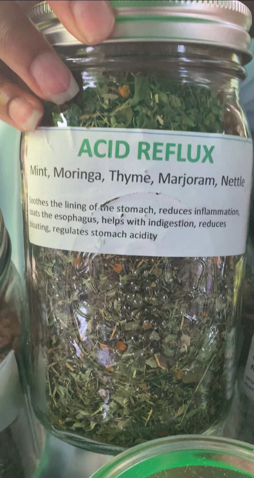 Discover the power of nature with our specially crafted Acid Reflux Relief Tea Blend. This unique blend combines five potent herbs—Mint, Moringa, Thyme, Nettle, and Marjoram