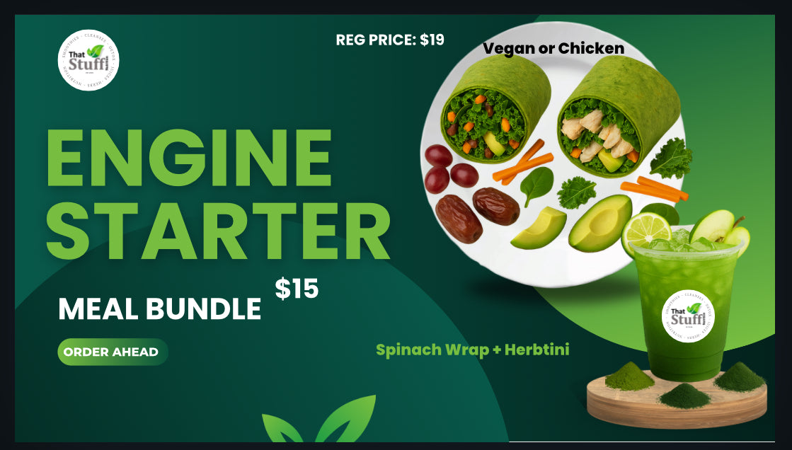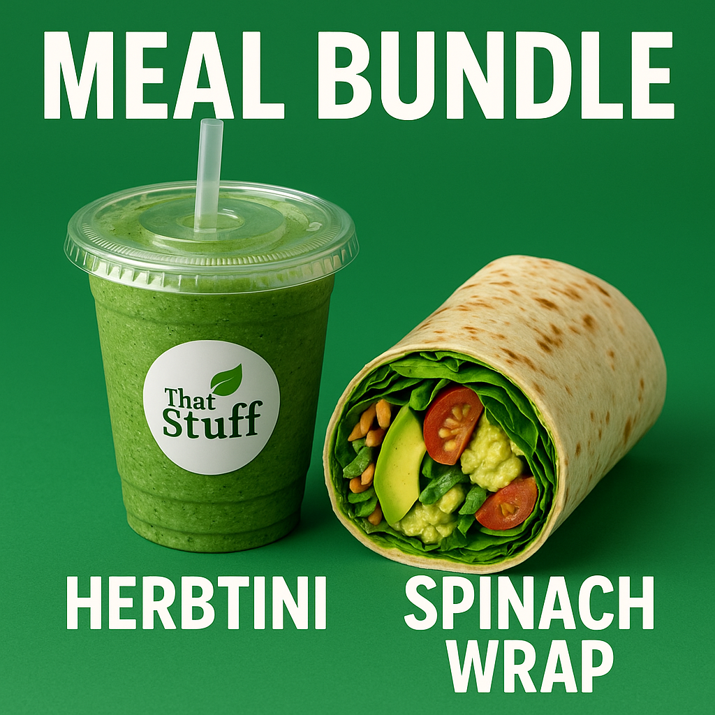 Jumpstart your day with the Engine Starter™ — a powerful meal bundle designed to energize your body, nourish your cells, and keep you moving with clean, functional ingredients. This convenient combo includes one refreshing Herbtini™ and one Spinach Power Wrap, making it the ideal grab-and-go option for busy professionals, students, and wellness-focused individuals.