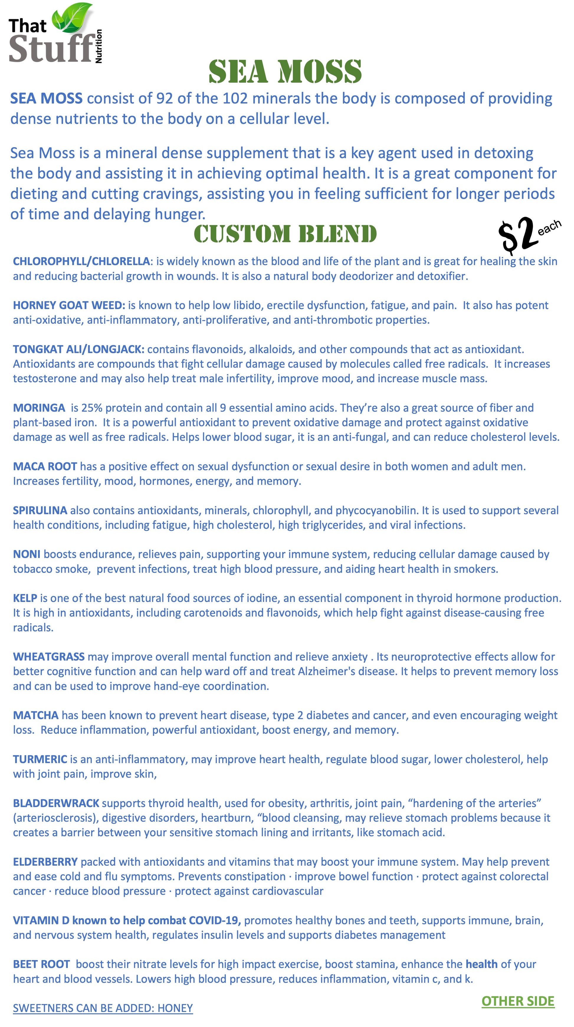 (Available with different added minerals) custom create your own also check out our (Ultra Sea Moss) & (Bro Moss)