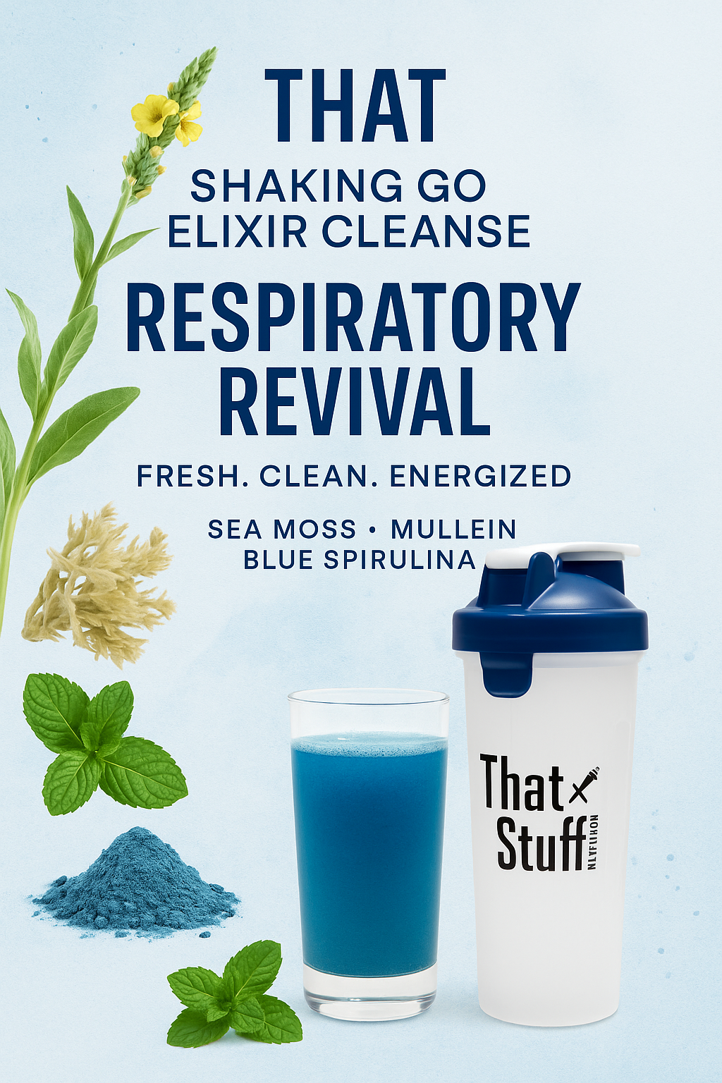 - Blue – Respiratory Support (with mullein, blue spirulina, mint, sea moss)