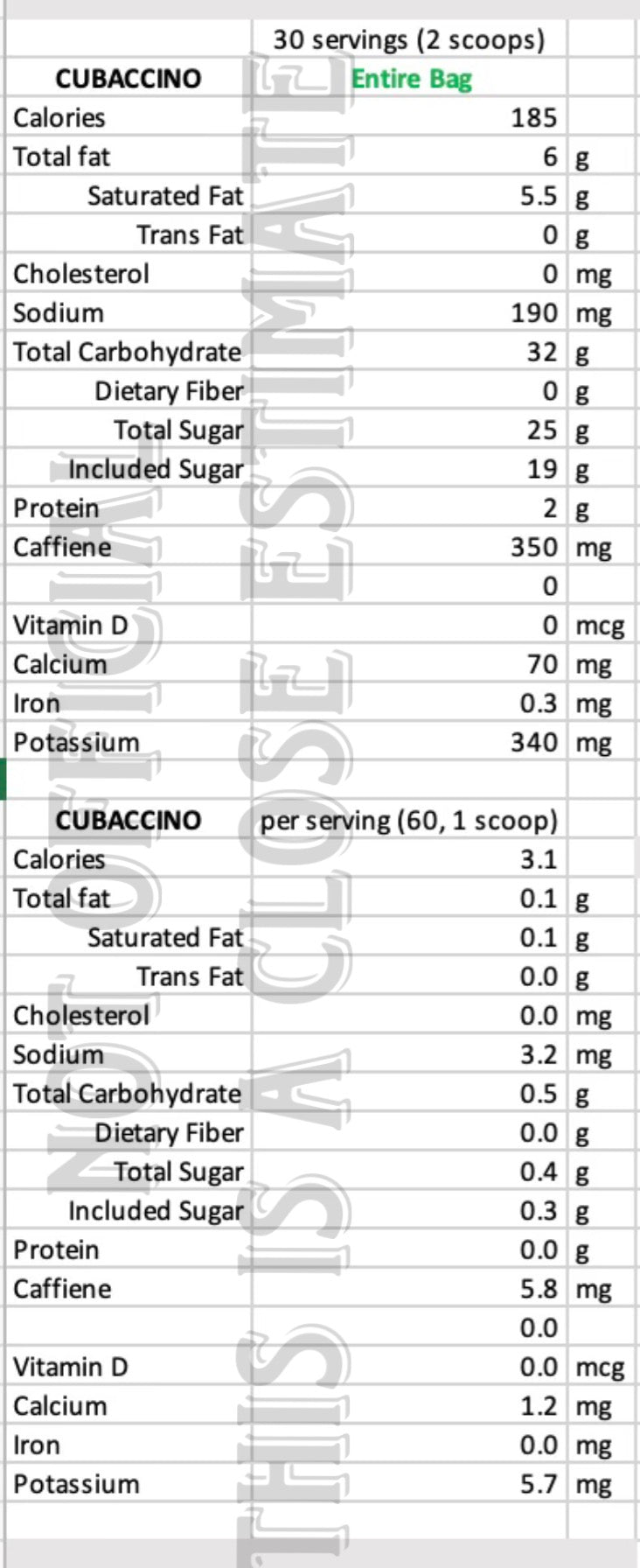 Guarana (Paullinia cupana) is a climbing plant native to the Amazon basin, and its seeds have been used for centuries by indigenous tribes for their stimulating properties. Today, guarana is a popular ingredient in energy drinks, supplements, and herbal preparations due to its rich content of caffeine and other bioactive compounds. This ingredient is 22% higher in caffeine and encouarged to use at your own discretion. WE also do not recommend that you add this to the Cubaccino as there is already Coffee in this blend.